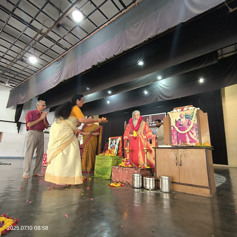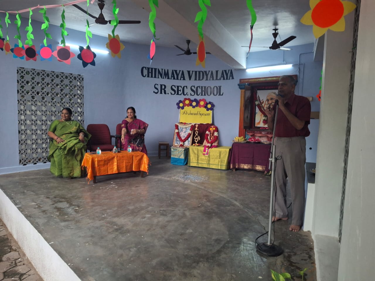 Smt. Shanthi Mulayath, a devoted seeker and sevak of Chinmaya Mission, Chennai, who graced the event as the Chief Guest. The programme included the sacred Veda Vyasa Puja and the Guru Paduka Puja offered at the holy feet of our Pujya Gurudev Swami Chinmayananda. With devotion and reverence, students and staff offered their salutations to Him — our eternal guiding light — whose wisdom continues to inspire and illuminate our path.