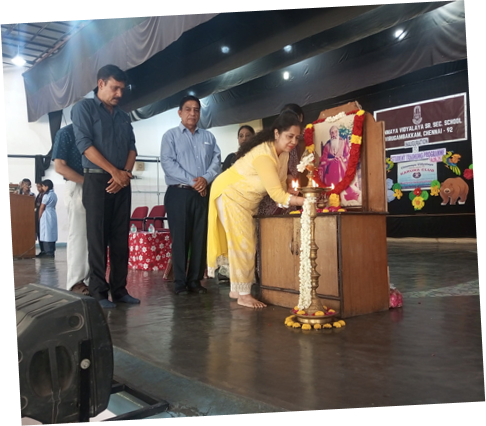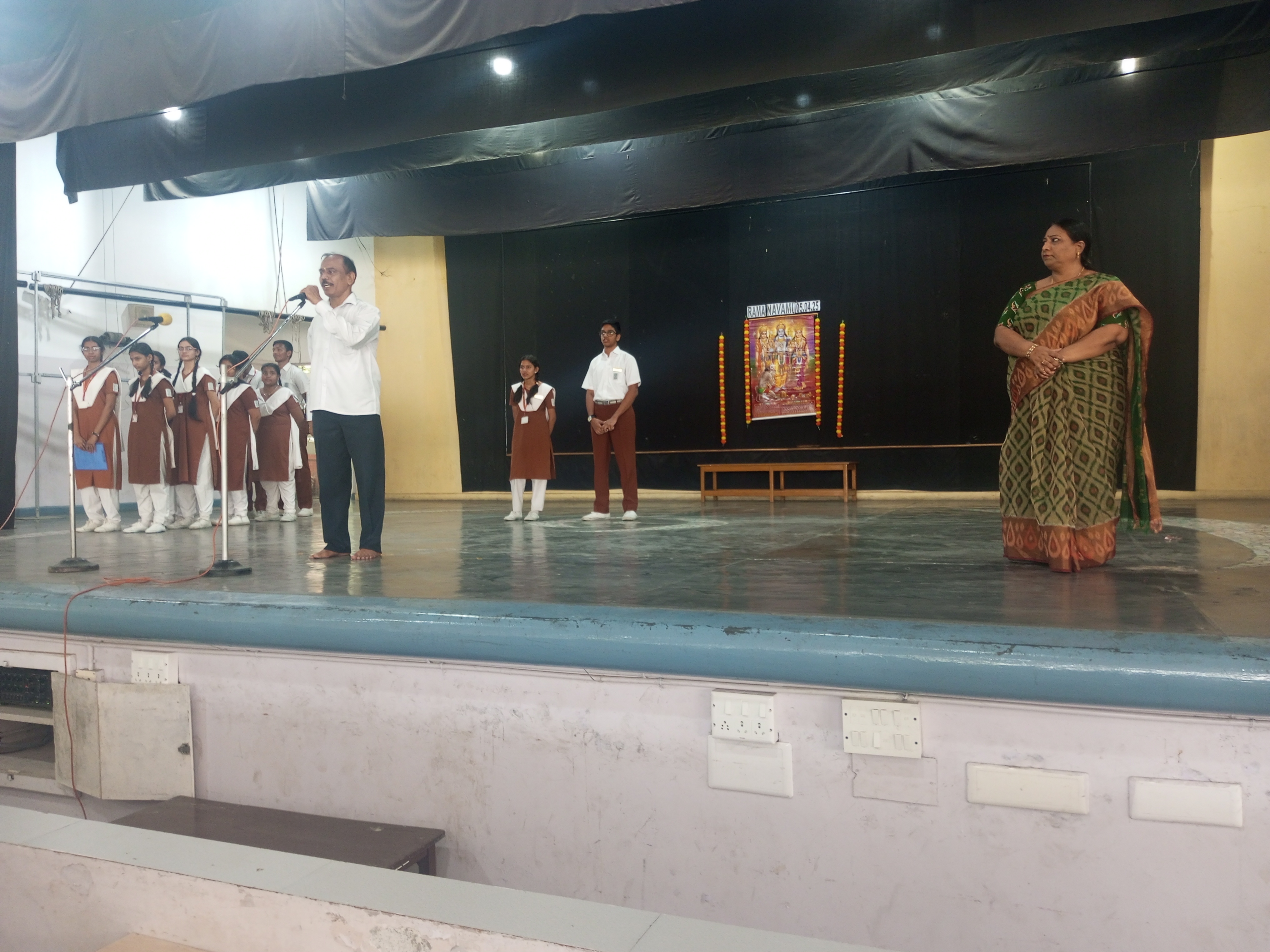 The 109th Janma Jayanti of Pujya Swami Chinmayananda (founder of the Chinmaya Mission) was celebrated with reverence and devotion on 8th May 2025. Swamiji dedicated his life to disseminating the knowledge of Advaita Vedanta across India and the world. Shri. N. Nagarajan, Correspondent; Smt. Chempian Elavarasi, Principal; Smt. Vasundhara, Vice Principal; staff; and students performed Paduka Puja and sang Bhajans. As a service, students distributed buttermilk at Koyambedu to quench the thirst of passers-by during the hot month.