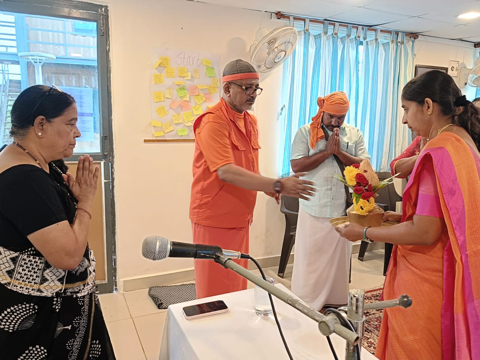 The historic Tamil versification of the Bhagavad Gita, envisioned by Swami Mitrananda, was released by the Honorable Prime Minister Shri Narendra Modi at GangaiKonda Cholapuram on 27th July. To celebrate this milestone, a heartwarming felicitation was held at the Chinmaya Heritage Centre on August 3rd where Swami Mitrananda honoured three dedicated teachers—Mr. Vijayakumar, Smt. Velvizhi, and Smt. Vidyalakshmi—for their invaluable contributions to the project. Their efforts stand as a shining example of devotion and scholarship, enabling the eternal wisdom of the Gita to resonate in the mellifluous beauty of Tamil for generations to come.