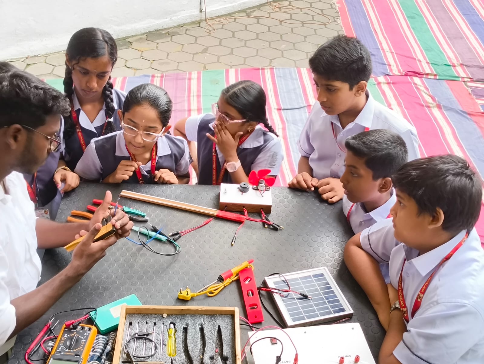 On 3rd September 2025, Chinmaya Vidyalaya Sr. Sec. School proudly hosted the “Skills on Wheels” initiative by Lend A Hand India, in collaboration with CBSE. As the mobile lab rolled in, students stepped into the world of hands-on learning—drilling, grinding, carving, circuit-making, and even basic medical checks like BMI and blood pressure monitoring. Covering fields like electronics, mechanics, agriculture, and health, the experience seamlessly blended theory with practice. This initiative ignited curiosity in students, empowering practical thinking, and reminding them that true learning often begins where the textbook ends.